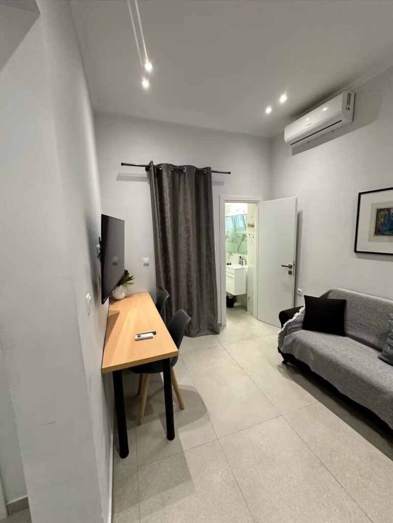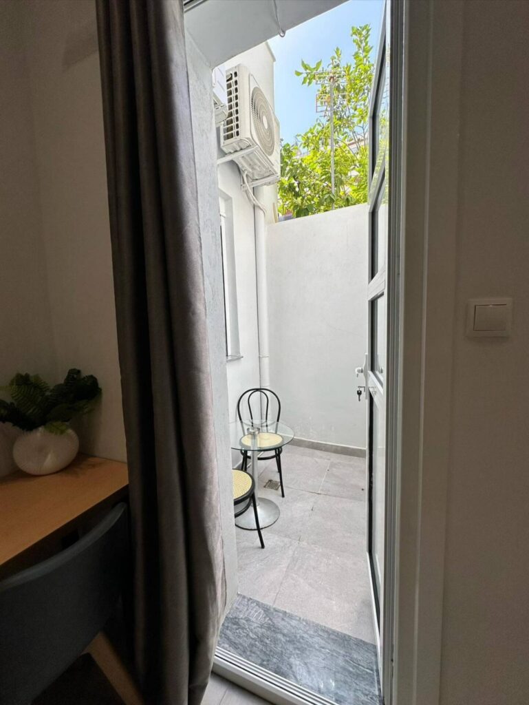 There is an air conditioning unit, a double bed, a flat screen tv, a small outdoor sitting area etc. There are washing machines in the laundry room up on the terrace that cater for the four apartments in our building.